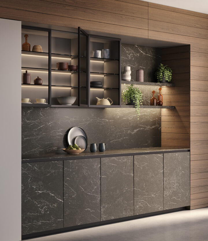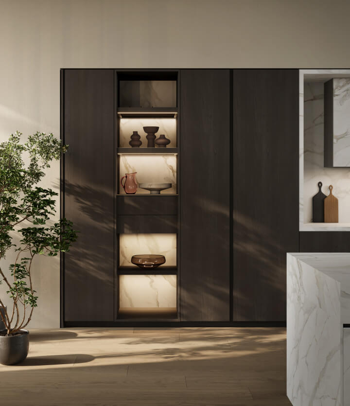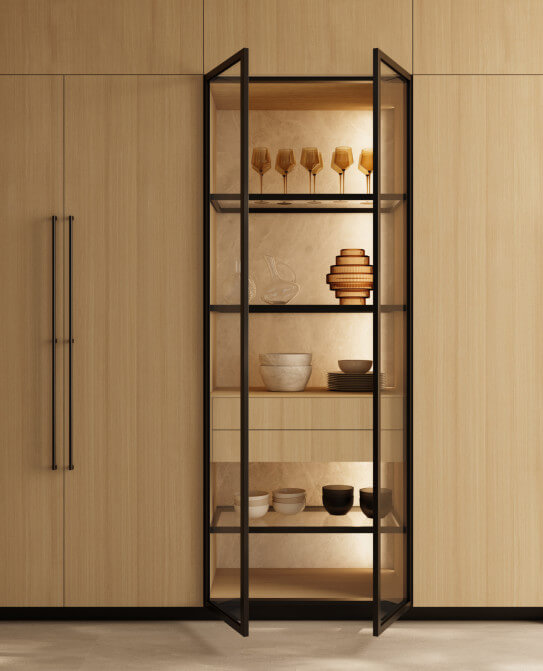 Ville aux horizons futuristes et à la lumière dorée, où l’innovation rencontre le luxe du quotidien et chaque détail reflète une élégance tournée vers l’avenir. Un cadre en aluminium qui accueille des matériaux précieux, idéal pour la vision contemporaine de Dubaï.