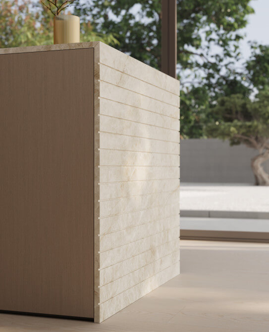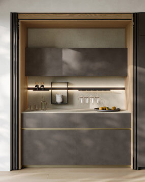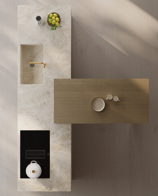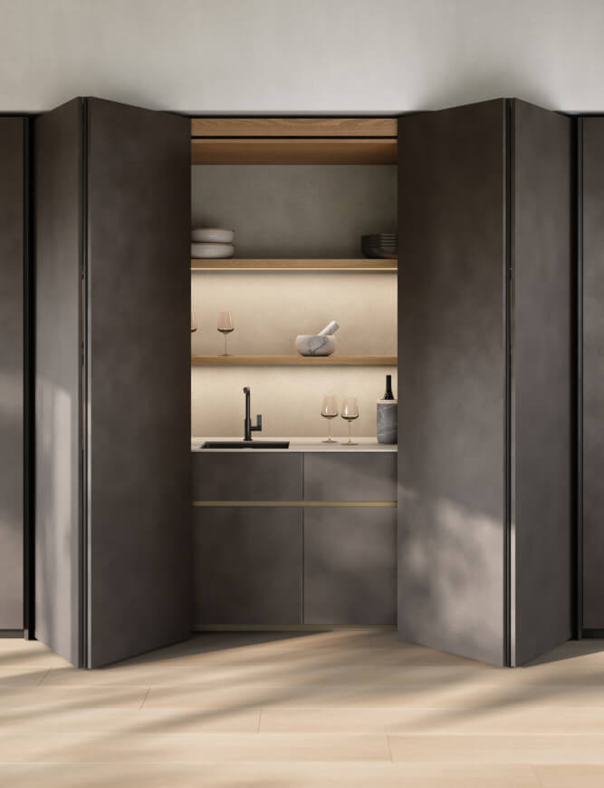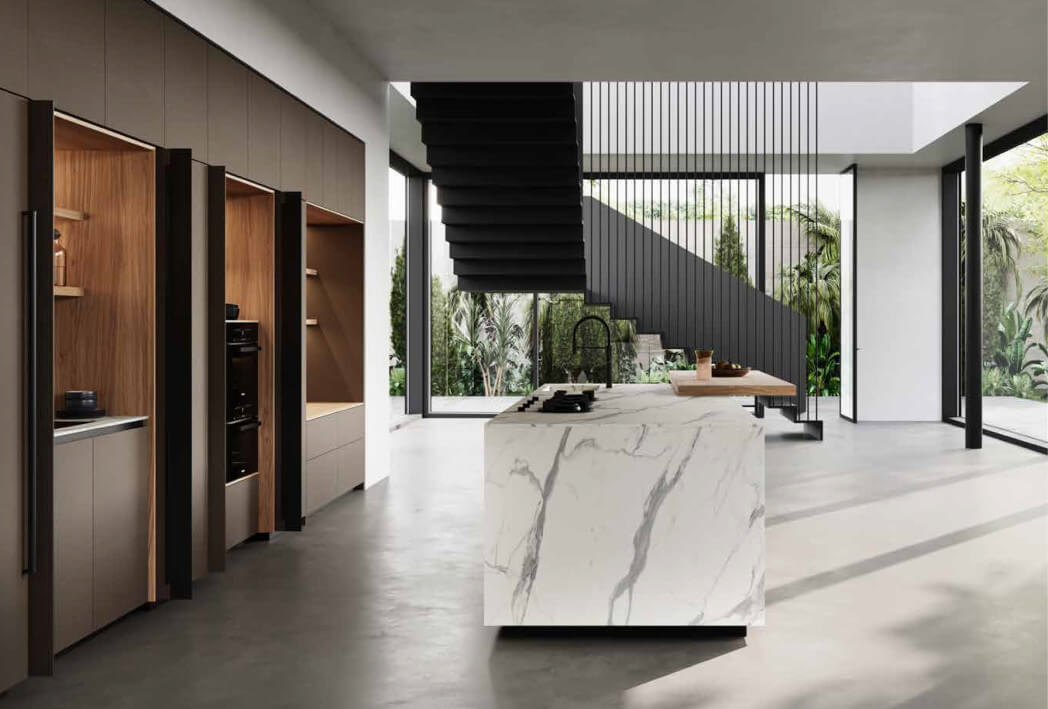 Où la lumière australienne façonne les espaces et inspire des cuisines au caractère essentiel, contemporain et naturellement sophistiqué. Kate adopte une ouverture sans poignée pour une esthétique essentielle, inspirée de la luminosité sobre de Perth.